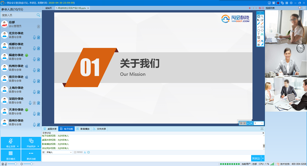 網(wǎng)會科技是中國領(lǐng)先的遠程視頻會議軟件以及視頻會議系統(tǒng)、網(wǎng)絡(luò)視頻會議全面應用解決方案的供應商.產(chǎn)品涵蓋軟硬件視頻會議系統(tǒng)、視頻智能錄播系統(tǒng)等 請撥400-004-0268。